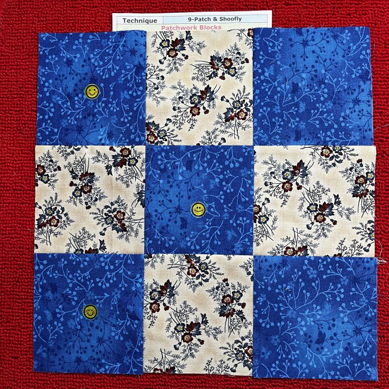 This week’s first patchwork block is the Nine Patch.