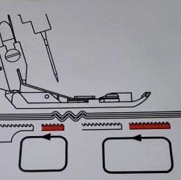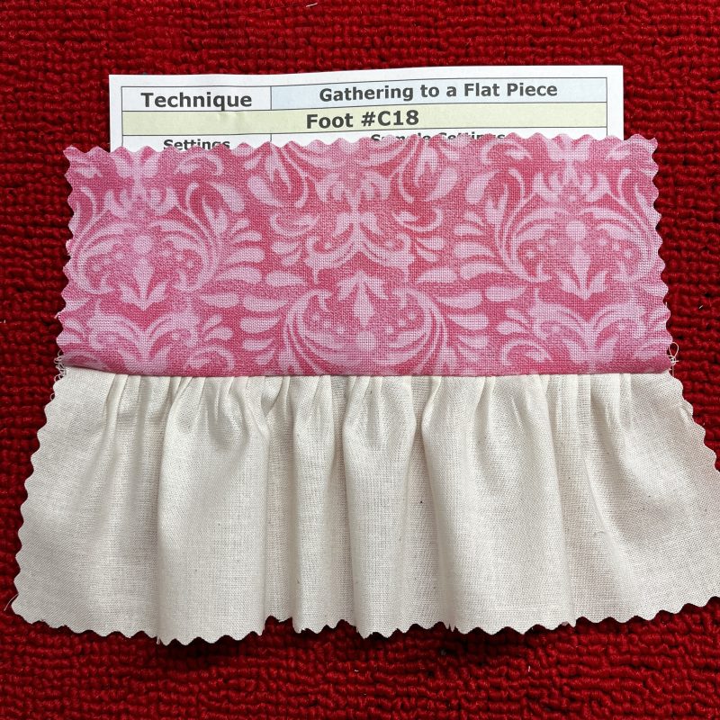 Foot #C18 can be used with either one layer of fabric or for attaching a flat layer to a gathered layer.