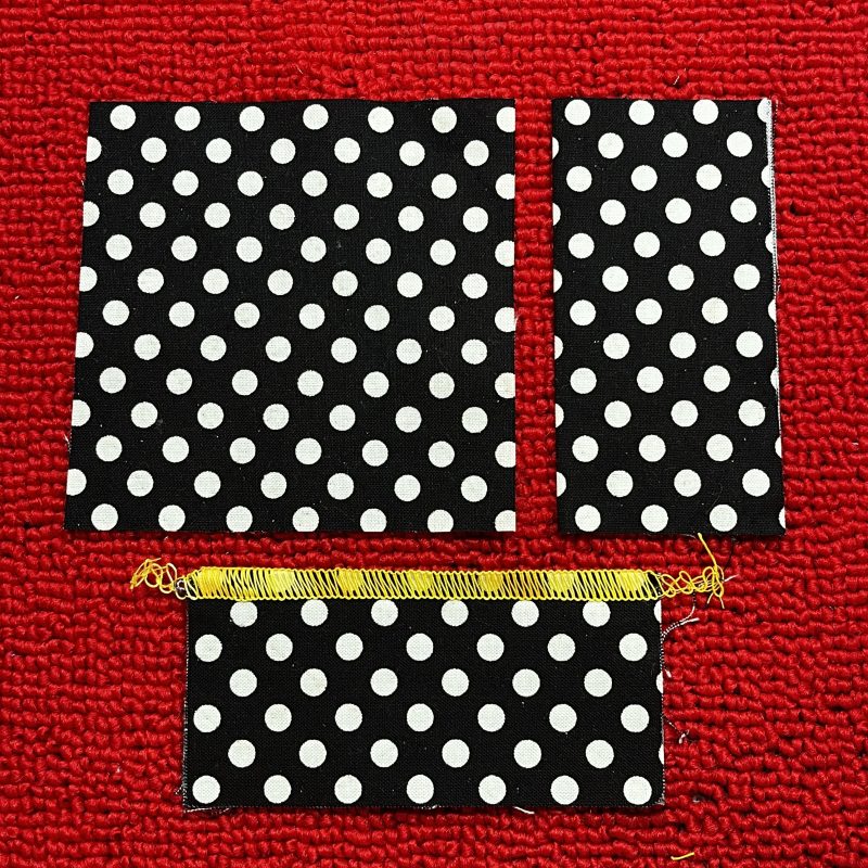 Sample Prep: Cut 3 squares @ 4”, 1 rectangle of main fabric 9” x 4” and 1 rectangle of backing fabric 9” x 4”