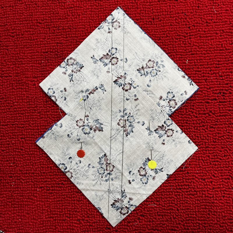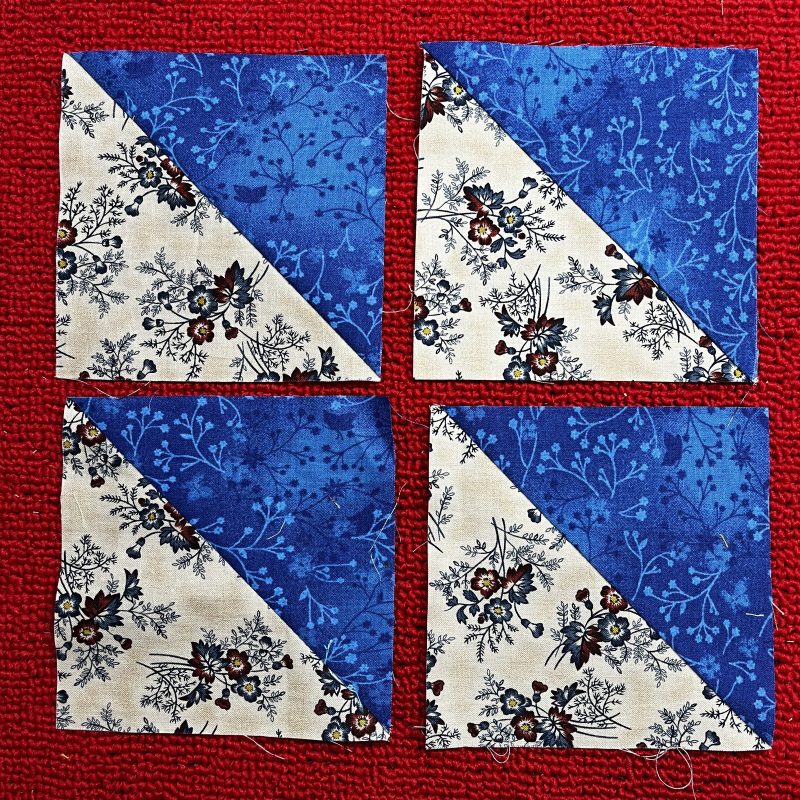 Step One: Create two 4 ½” Half Square Triangles as per the technique and settings used in previous post.