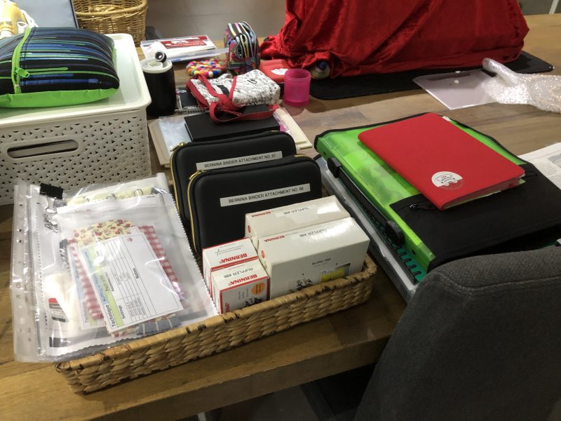 I set up my B790PRO, L890 and laptop on the dining table, as well as a tray full of blog samples and accessories, cutting mat and rulers (over on the kitchen bench), and a full basket with everything I need to make the Bloom and Grow Quilt on my L890. More about that at a later time.