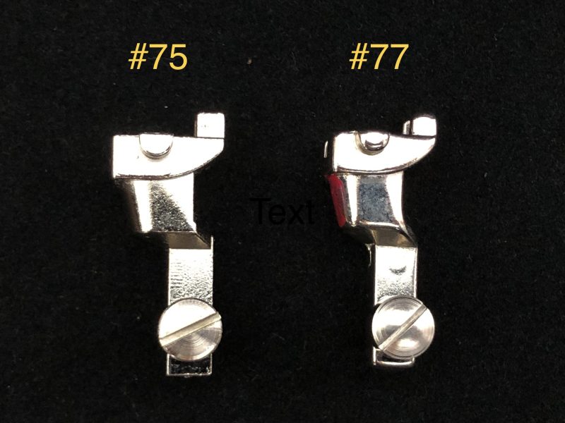Adapter Standard #75 or ‘low shank’ adapter is used with, and included with Ruffler #86. It can also be used to attach some generic low shank presser feet to Bernina sewing machines … and yes I have tried and used some quite successfully over the years, having worked on ‘Sewing Club Day Projects’ within sewing machine stores that were multi-branded. I used to refer to them as my ‘Frankie’ Feet (referencing Frankenstein here!). The Shank Adapter #75 below has an ’off-brand’ cording foot attached with a screw, and the one on the right shows an ‘off-brand’ clip-on foot holder screwed to it … different brand machines have different sized foot holders suitable for use with their particular feet.