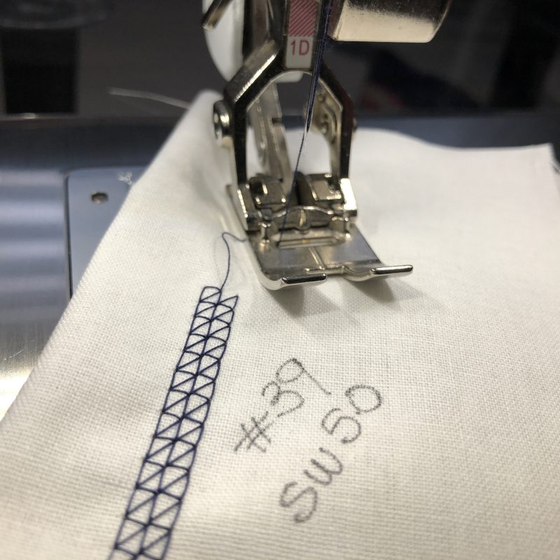 After choosing the stitch I wanted, Stitch #39 – aptly named ‘Coverstitch Effect’, I sewed out a sample on some woven cotton – Stitch Width 5.0
