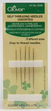 What looks like a tube of lipstick, is actually a little needle holder, where I store my most ‘reached for’ needles, including these fabulous Clover Self Threading Needles. There are other brands available, but I prefer the quality of these over other brands. Simply place the thread at the top of notch of the needle (u-shaped groove) and then by pulling it down, the thread will go through the eye of the needle. Perfect for burying those quilting thread ends. Game changer!!