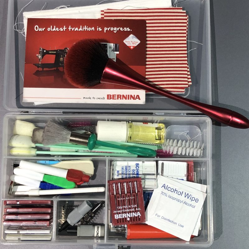 I have a ‘maintenance’ kit which is always near my machine, handy to change a needle, to add some oil, or a quick brush/clean out.