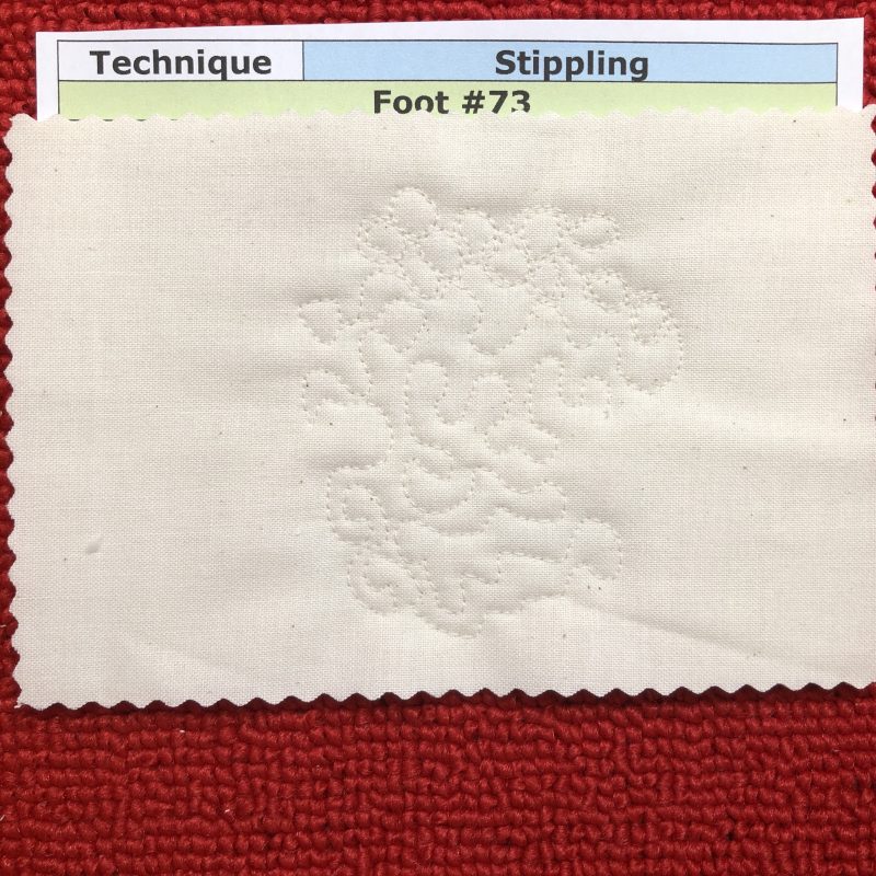‘Micro Stippling’ – changed to SPI 16 and love how small a circle I could manage with this foot. The cutout in the front is about the size of my circles! The smaller the circle/stippling, the more SPI I change to, giving a nice rounded circle.