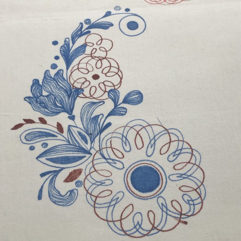 ‘Painting Ceramics’ – My sample for this was ‘drawn’ on a small plastic takeaway container lid. I did not have a china tile or plate on hand as per the requirement that was small enough for me to keep in my storage box, and neither did I have any pens suitable for a ceramic surface. I used a Sharpie marker! I chose one of the flowers from the previous design, and like embroidering with threads, I stepped through the design by colour to complete the sample. (Again, I had the wrong Technique sheet on the sample – this one is Painting Ceramics.)