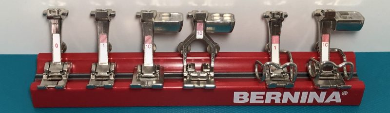 In my earlier days of sewing with a Bernina, when machines had a maximum stitch width of 5.5mm, new machines like my first one, a Bernina 1230, came with a Foot #0. For many years now, new Bernina Machines come with a Foot #1, or #1C and #1D – depending on which model you have. Foot #0 is still available of course, however all the techniques and settings for Foot #0 in the Big Book of Feet, can be successfully stitched out with Foot #1/#1C/#1D. See ‘Foot’note at end of post.