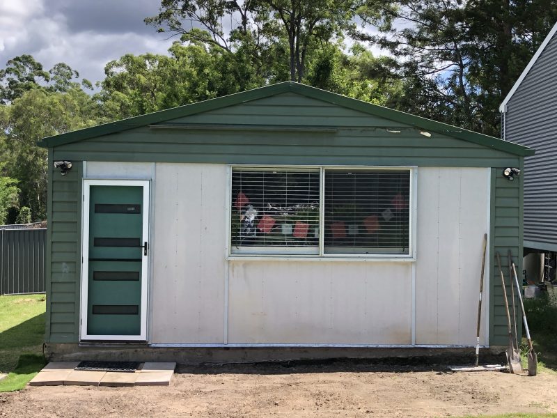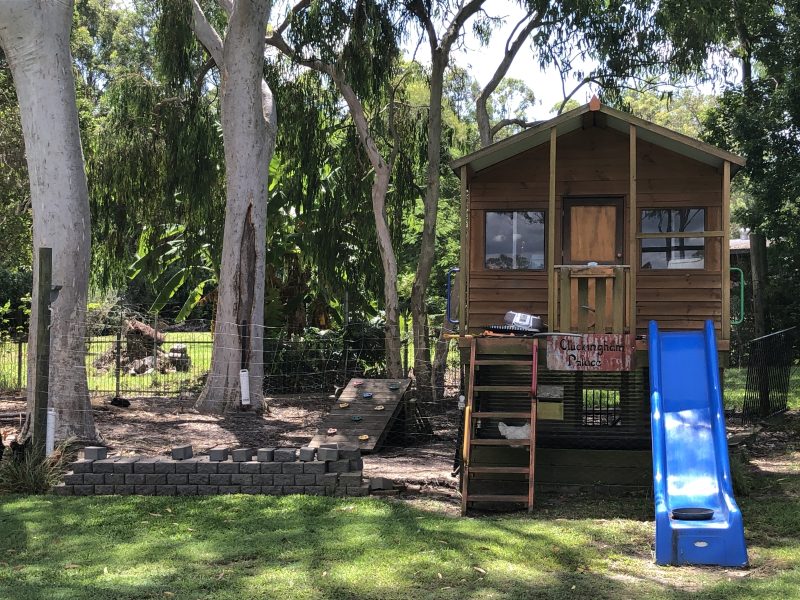 Last week, light rain kept outside ‘transformations’ quiet. Ben, my Son-in-law/’Project Manager’, stayed busy with lawn maintenance and clearing fallen branches from a recent storm on our acreage property. The Sewing Gypsy Studio sits near our Guest Cabin, where Sally’s been working on new garden beds. These will eventually connect with the Studio’s patio and the pathway to the house. Further away is ‘Cluckingham Palace’, home to our 10 chickens, under gum trees.