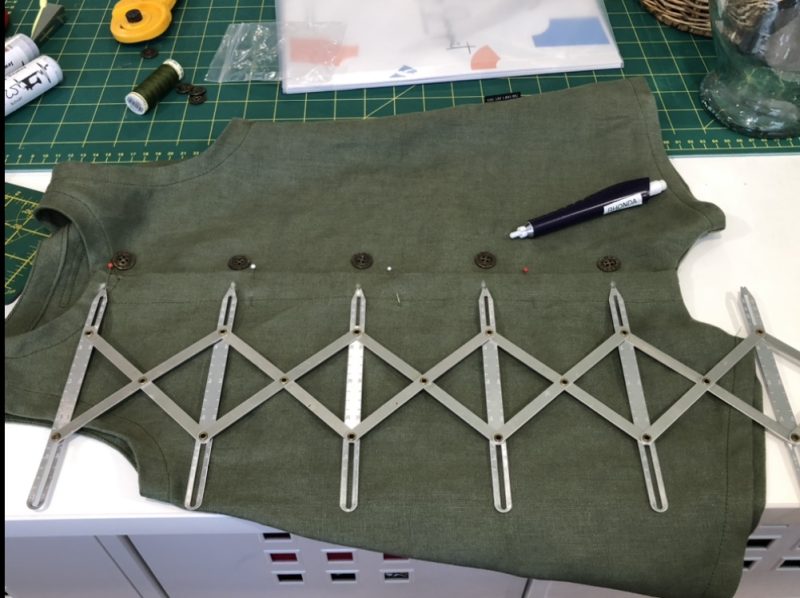 Samples this week were sewn out on the Bernina B790PRO, and the machine’s feature I’m loving this week, is that it has a Laser Light to position buttonholes exactly where I need on a garment, or in this case, a sample.